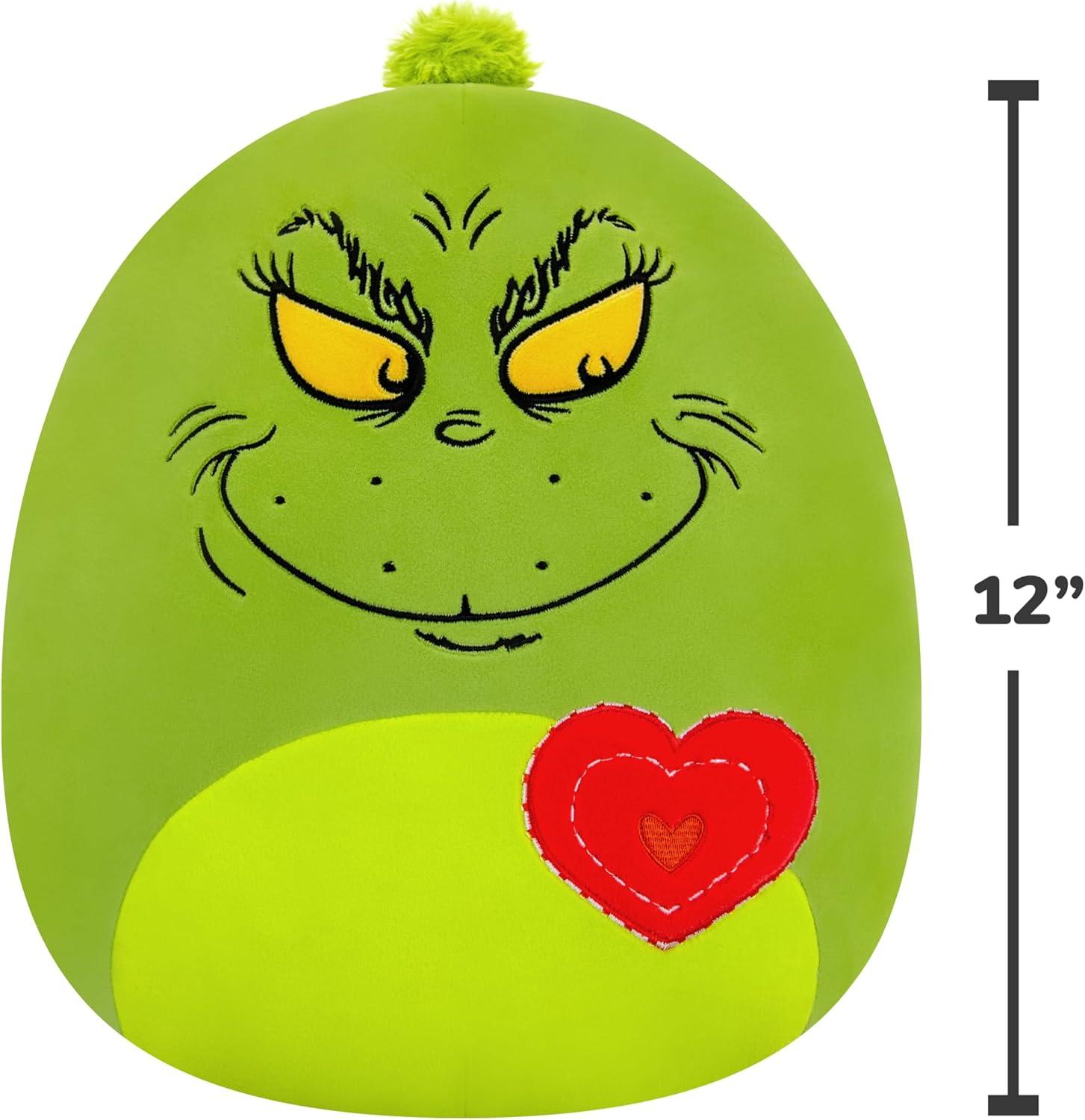 Celebrate the season with this 12in Grinch with Heart plush! Squishmallows are made with ultrasoft materials and make the perfect cuddly companion for long flights, comfy nights—even Dr. Seuss movie marathons! Look out for other holiday inspired Squishmallows and bring home the happiness today. Only by Original Squishmallows. Join the Squad!